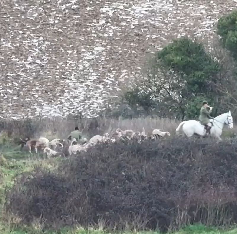So sorry the Blackmore and Sparkford Vale Hunt have just killed a fox. Locals Against the BSV had their drone up. Whip Ben Summersgill can be seen gathering what's left of the fox's body in his jacket. He then hides in a hedge covered in blood. So sorry we were too late 😭🌈