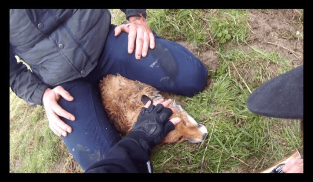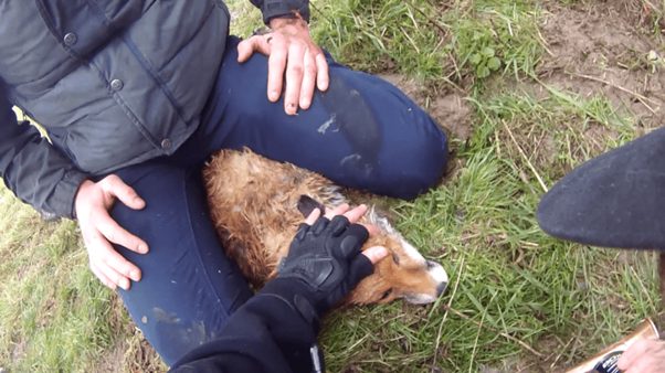 Hunt sab secures the body of a fox as evidence against the Thurlow Hunt.