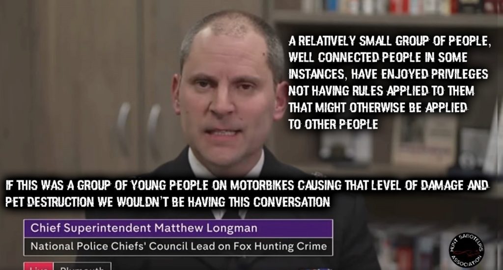 This was initially an extremely effective tactic, with few hunts being prosecuted under the Hunting Act. Of course, this was only because of a national policing landscape that was professionally incurious about ‘trail hunting’ and all too ready to accept the word of the privileged and well-connected people involved. This fact has finally been acknowledged by Chief Superintendent Matt Longman – the National Police Council’s lead on fox hunting – who described the post-Hunting Act period as “one of the most farcical eras in criminal justice history, because hunts are still offending. We are seeing it regularly.”